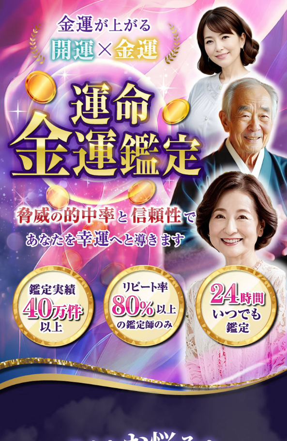突然「かつてあなたによく似た方を鑑定したことがある」とメッセージを送りつけ、運勢の修正をすることで眠っている「金覚相」を覚醒させると期間限定の無料鑑定を持ち掛ける。
