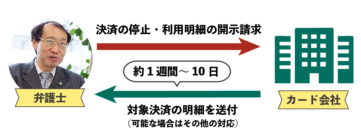 - クレジットカード会社へ「決済の停止」「利用明細の開示請求」を行います