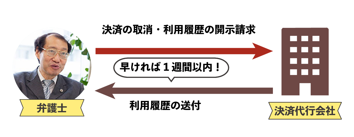 - 明細から判明した決済代行会社へ「決済の取消」「利用履歴の開示請求」を行います