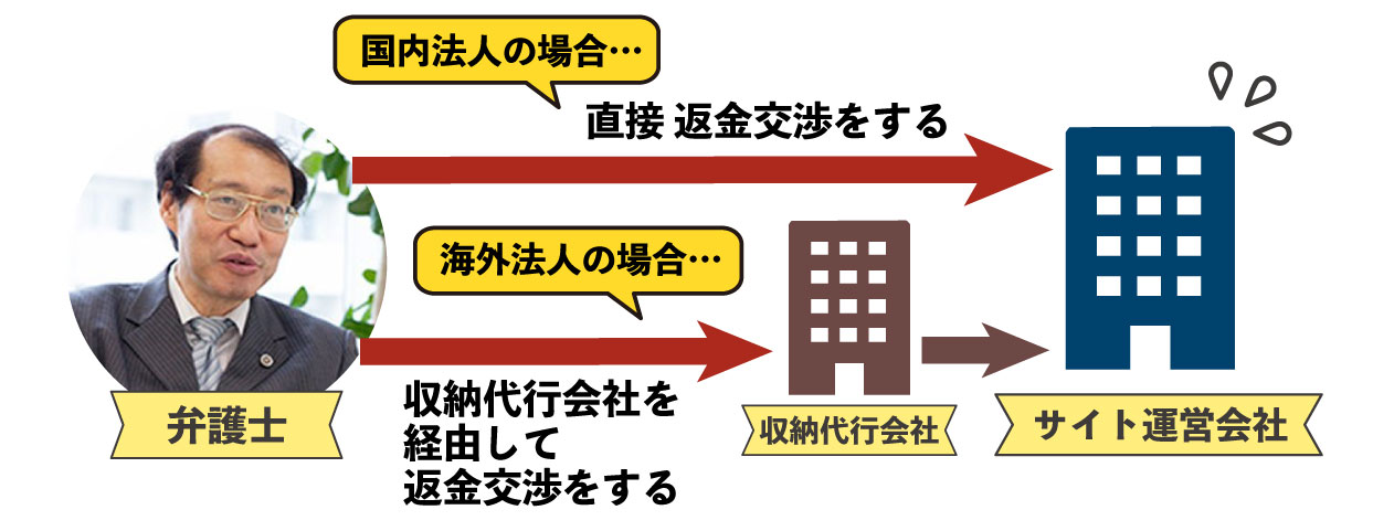 - 受取人であるサイト運営会社に返金交渉を行います